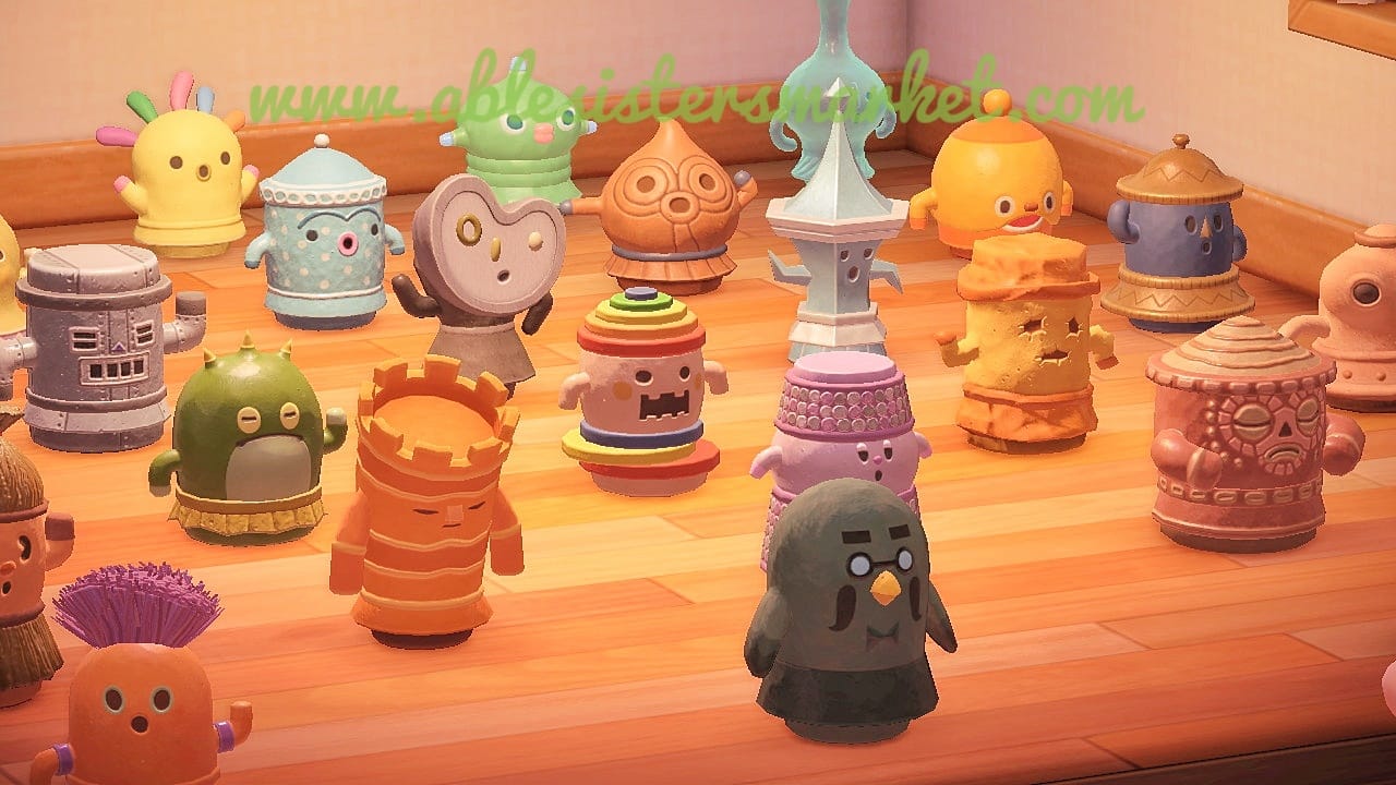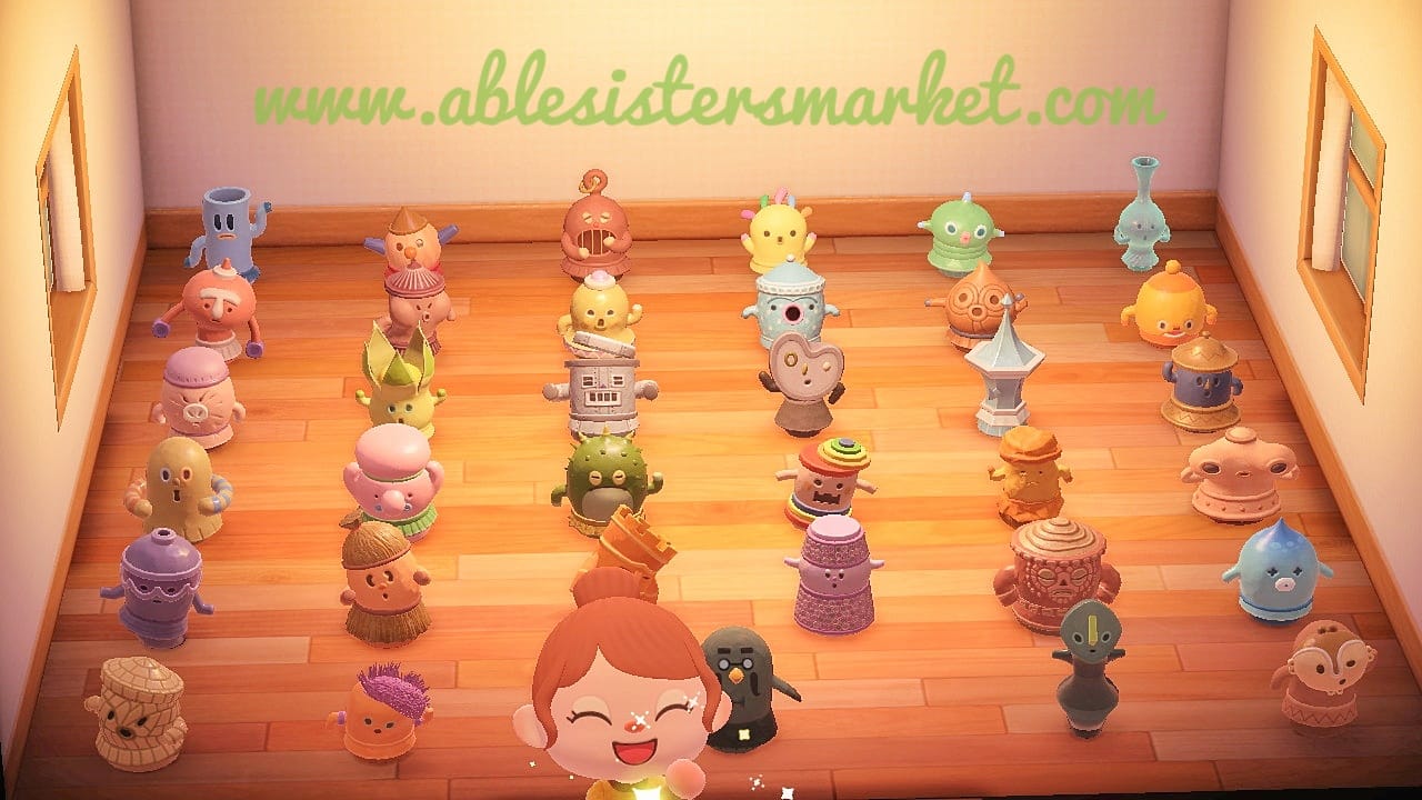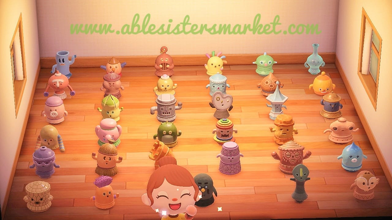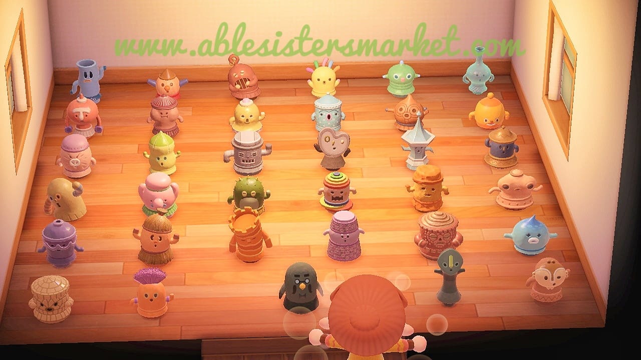 The purchase of this product includes all the gyroids available in Animal Crossing New Horizons and a stack of customization kits: